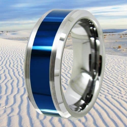 2 Bewertungen für Blaues Feuer – Wolframring für Herren – Silber und Blau – Herrenring 8mm