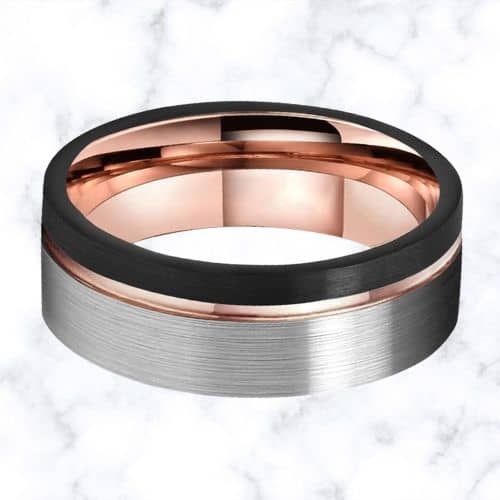 Erudite – Wolframring für Herren – Silber, Schwarz, Roségold, Herrenring 8 mm