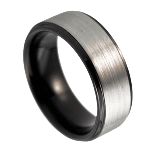 Flink – Wolframring für Herren – Silberner und schwarzer Herrenring 8 mm