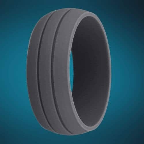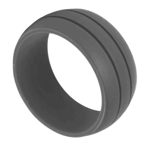 Der perfekte Ring für den Mann mit einem aktiven Lebensstil. Ein dunkelgrauer Silikonring für Männer mit Doppelrillen – super-bequem, sicher und langlebig für einen perfekten Ring für ihn.