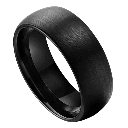 Ein elegantes Ringdesign für Männer. Gebürsteter schwarzer Wolframring für Herren in Kuppelform. Der perfekte Allroundring für ihn, erhältlich in den Breiten 6 mm oder 8 mm.
