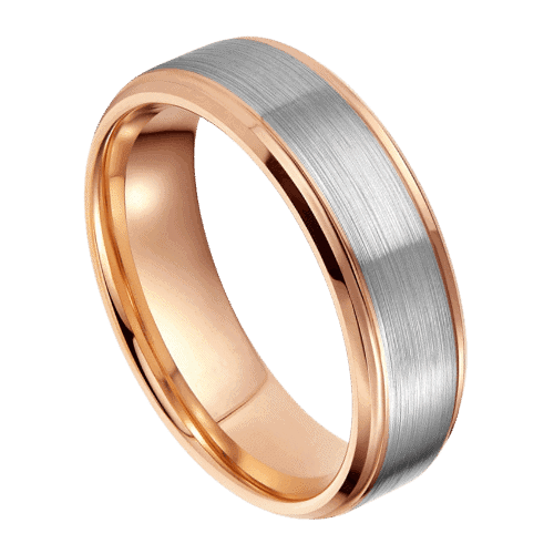 Der Silberaufstieg ist ein außergewöhnlicher Wolframring für ihn. Die Kombination aus Vintage-Roségold und gebürstetem Silber ergibt einen wirklich eleganten und stilvollen Herrenring.