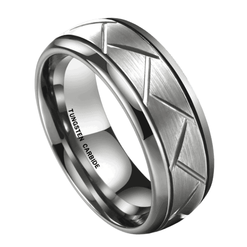 Tapfer – Wolframring für Herren – Silberner geriffelter Herrenring 8 mm