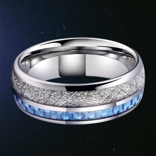 4 Bewertungen für Trailblazer – Wolframring für Herren – Herrenring aus künstlichem Meteoriten und blauer Kohlefaser, 8 mm