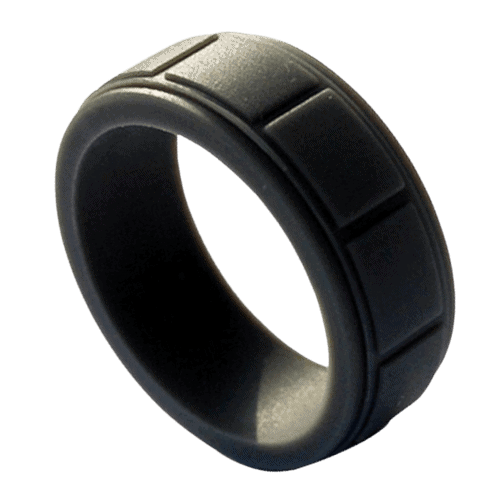 Der perfekte Ring für den Mann mit einem aktiven Lebensstil. Ein schwarzer Silikonring für Herren mit Blockmuster – super-bequemer, sicherer und langlebiger Ring für ihn.