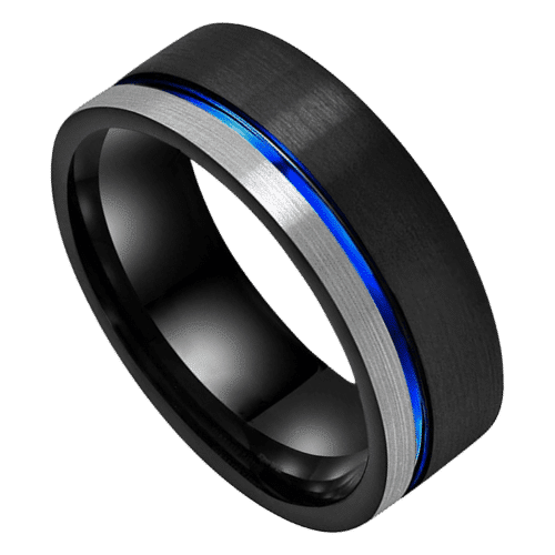 Überragend – Wolframring für Herren – Schwarz, Blau, Silber, 8 mm