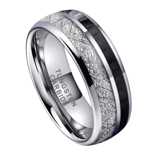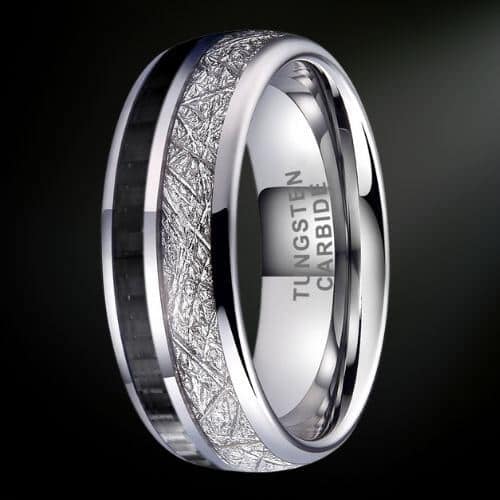 7 Bewertungen für Umlaufbahn – Wolframring für Herren – Silber mit künstlichem Meteoriten / schwarzes Karbonfaser-Herrenband 8 mm