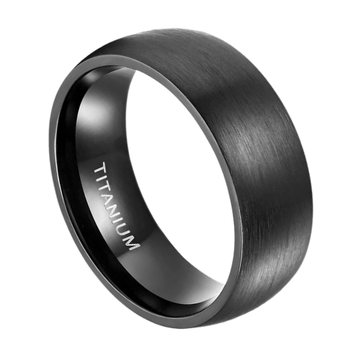 Ein schlankes und elegantes Ringdesign für Herren aus leichtem, aber dennoch superstarkem Titan. Ein kuppelförmiger, gebürsteter schwarzer Ring für ihn.
